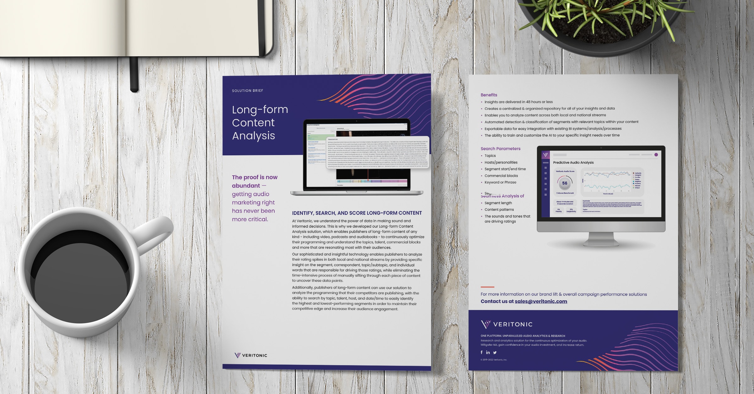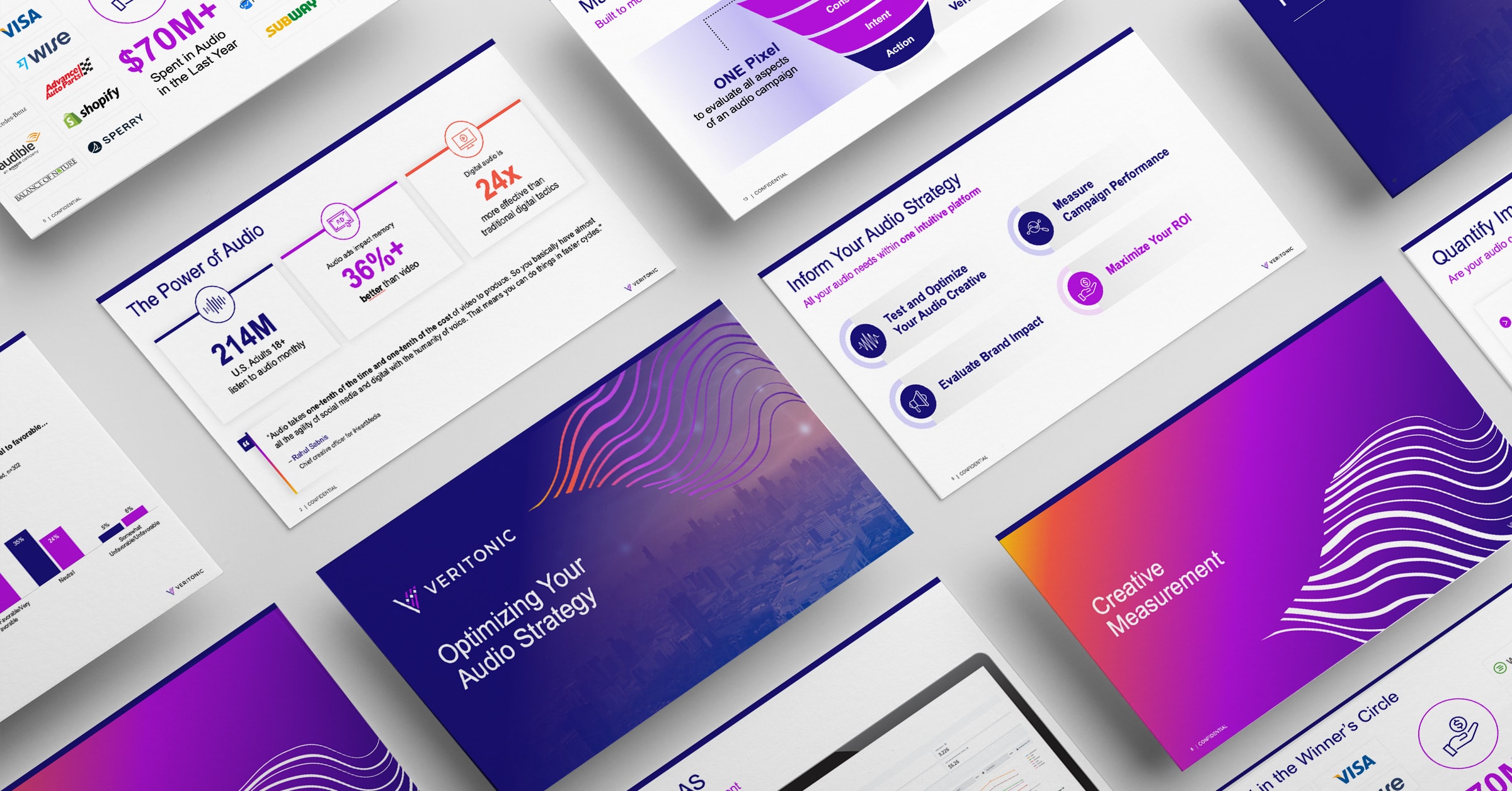 Veritonic, a leading player in the audio analytics industry, embarked on a transformative brand identity project to solidify its reputation as a pioneer in the world of audio analytics and research. They partnered with us, Pixels 360, to create their new brand identity as well design and develop a full suite of deliverables ranging from print collateral and presentation decks to their enterprise website and social media presence.